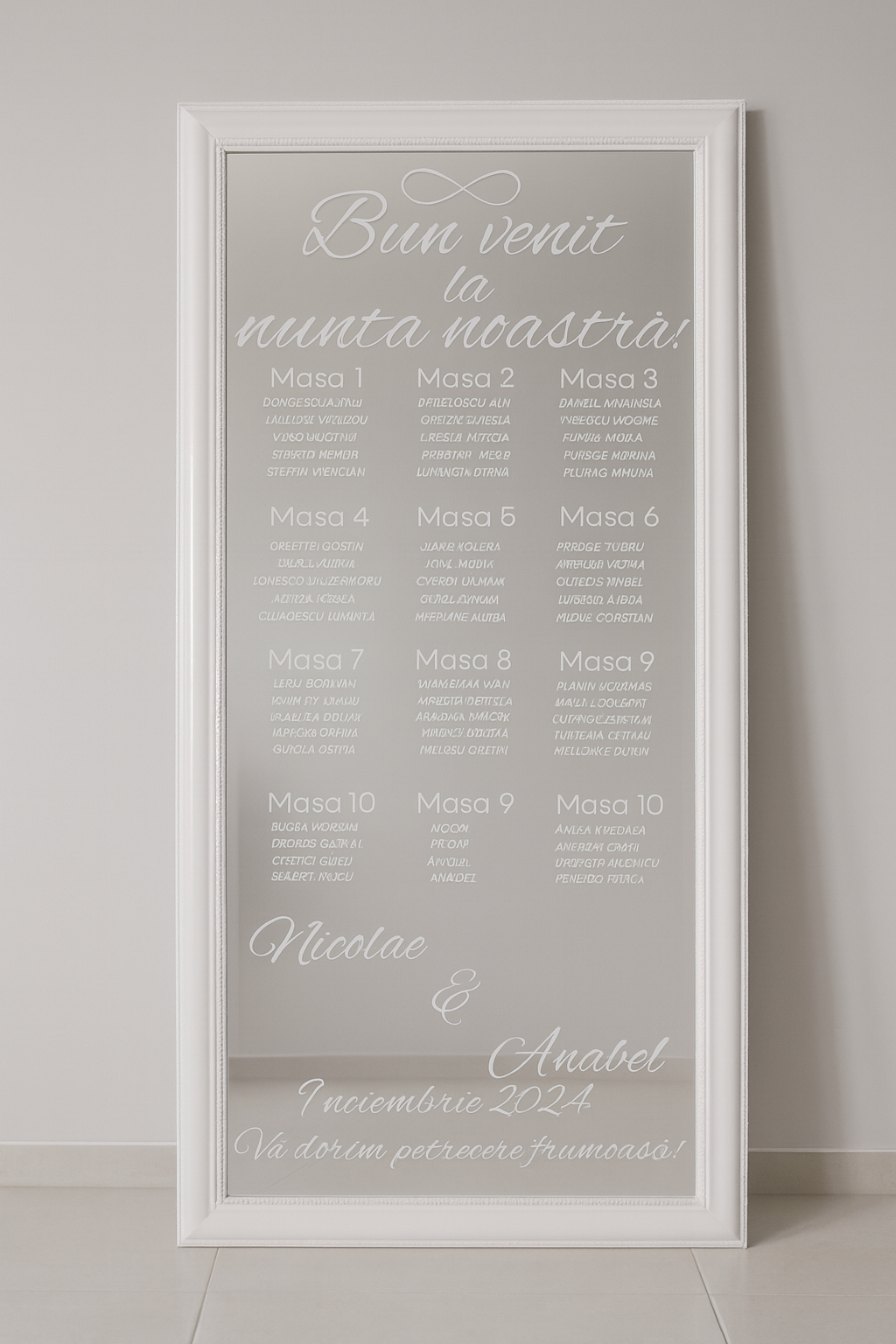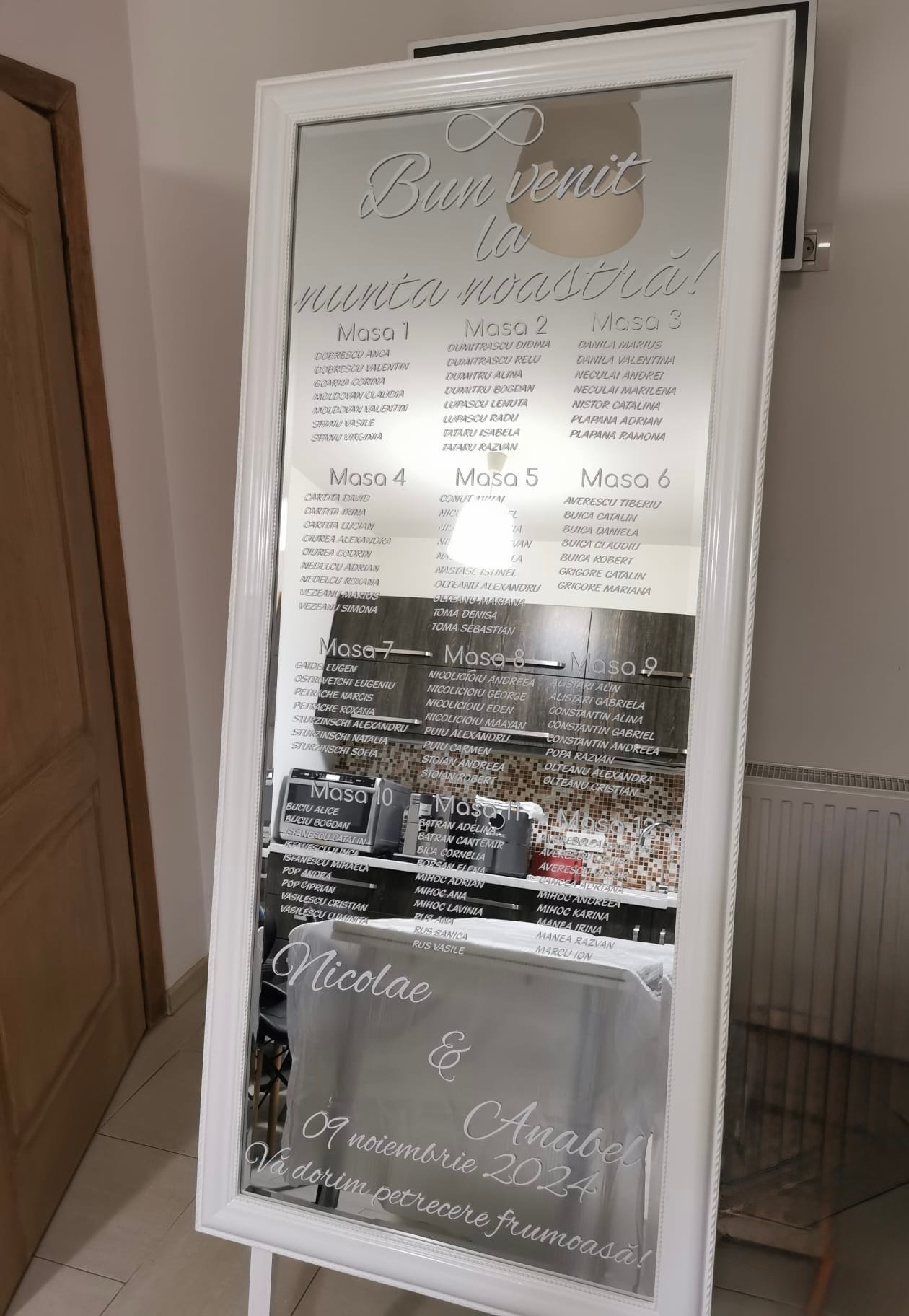 Transformă orice oglindă într-un element spectaculos de decor la nuntă cu stickere personalizate! ✨ O soluție elegantă și practică pentru a afișa planul meselor sau mesaje speciale pentru invitați.