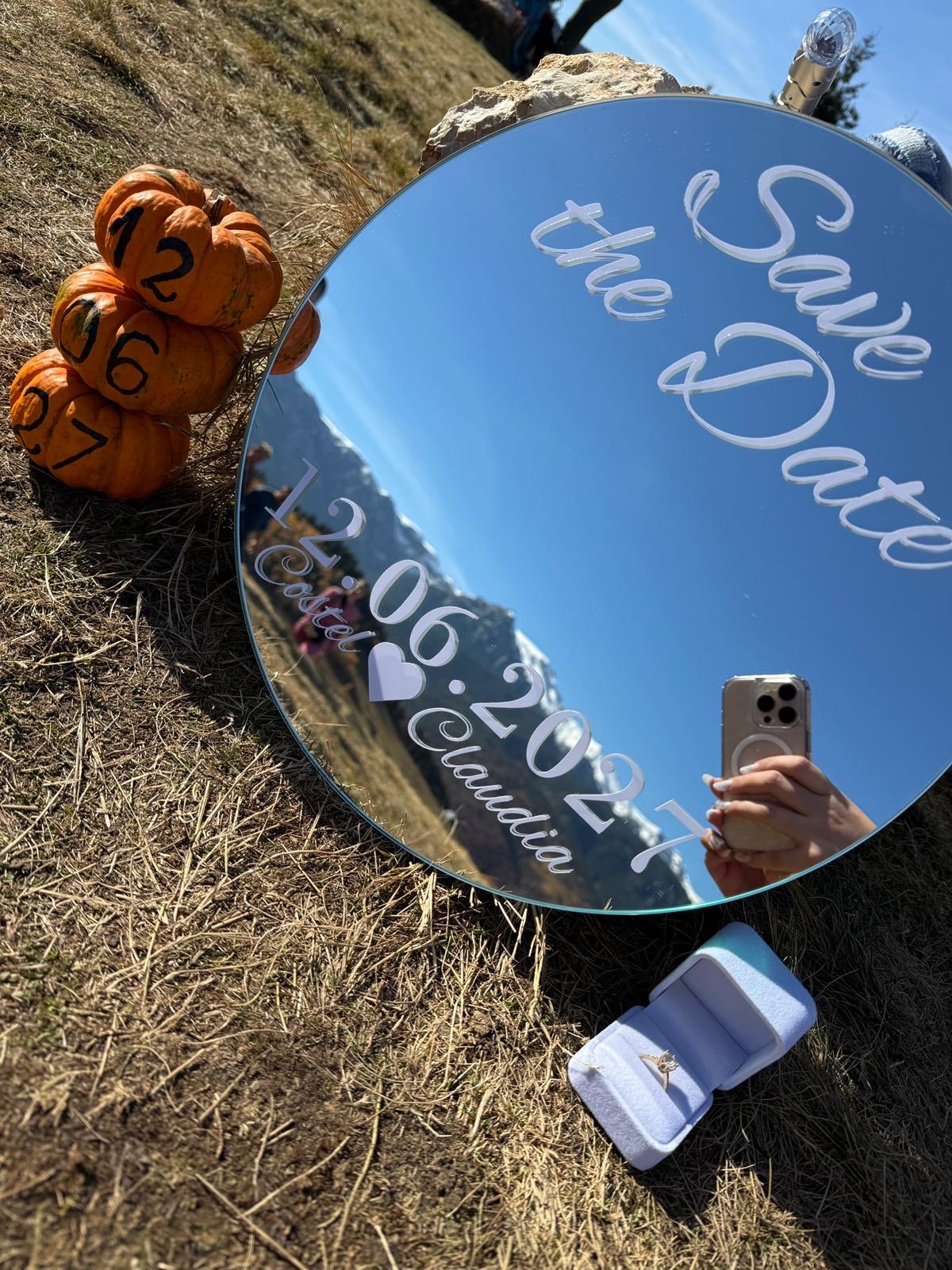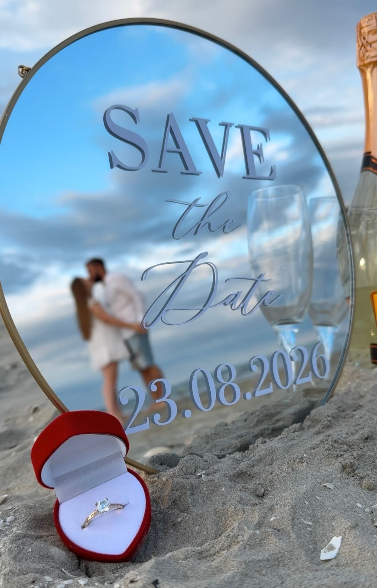 Sticker „Save the Date” ✨ personalizat pentru oglindă, o modalitate elegantă și creativă de a anunța data nunții.