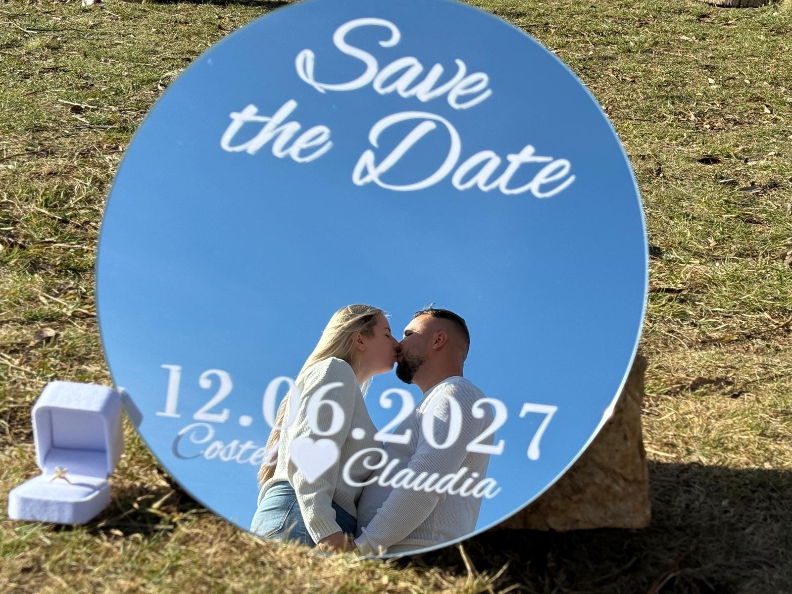 ✅ Sticker Oglindă „Save the Date” ✨ – Personalizat pentru Nunta Ta 💍