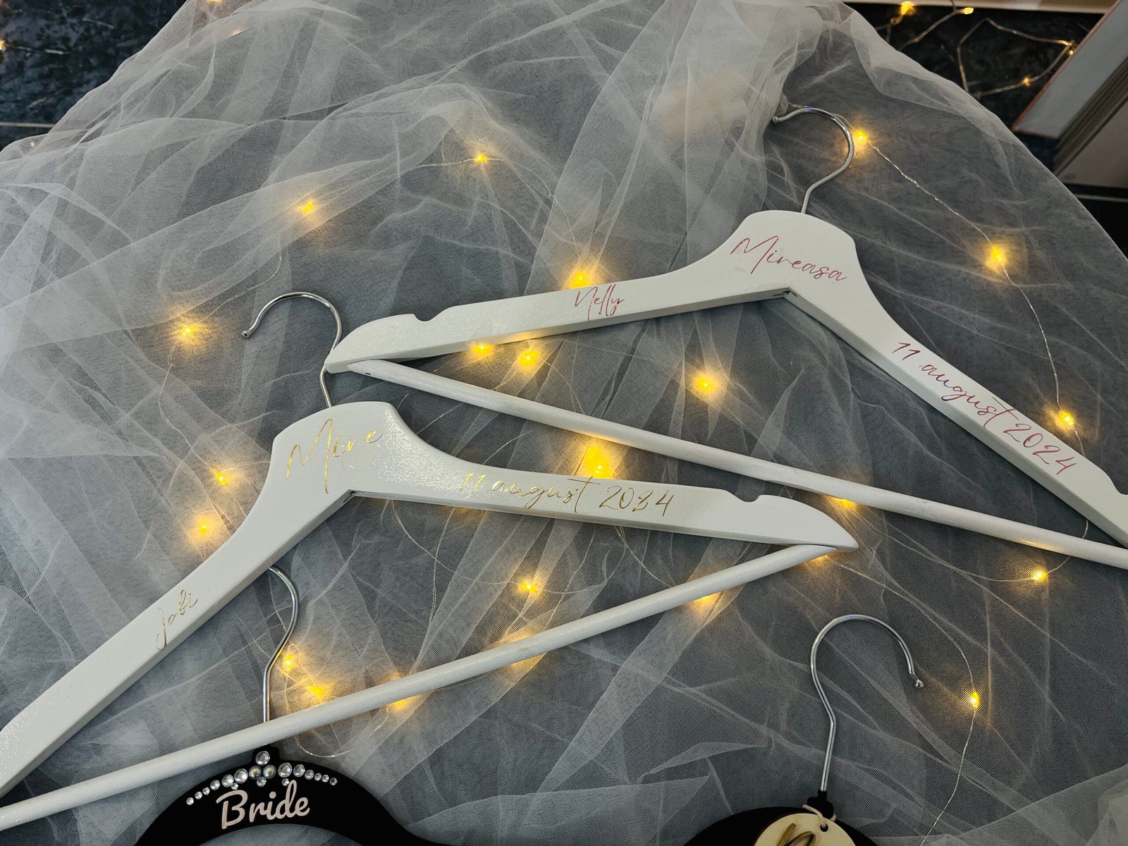 Adăugați o notă specială și elegantă pregătirilor pentru ziua cea mare cu sticker-ele personalizate pentru umerașe! Aceste detalii rafinate transformă umerasele obișnuite în piese unice, perfecte pentru ținutele mirilor, domnișoarelor de onoare și cavalerilor de onoare.
