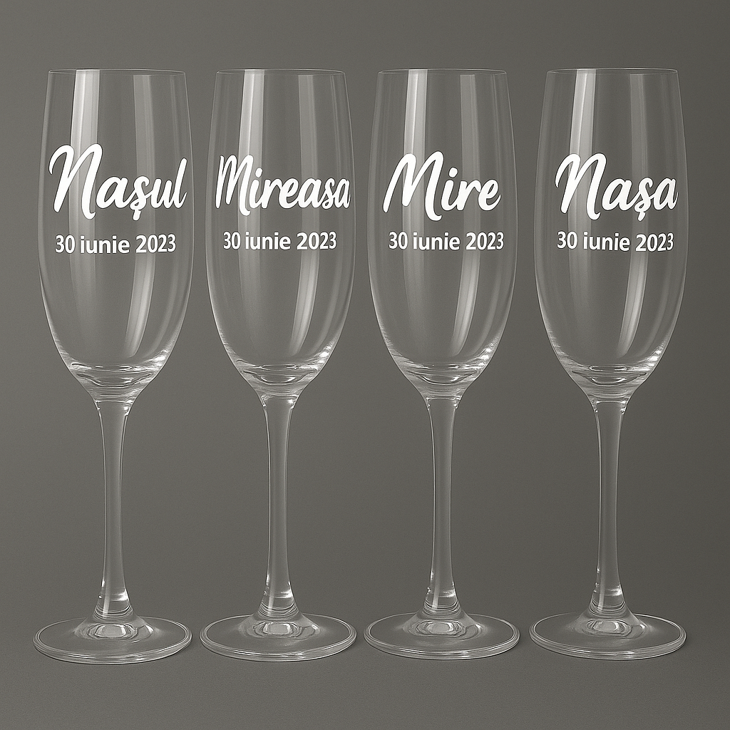 🎁 Set standard: 4 bucăți (mire, mireasă, naș, nașa)